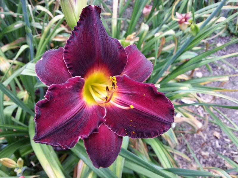 Als Schlusspunkt ein Exemplar aus einer Kreuzung, von der ich mir nicht so viel versprach, die sich aber in allen 12 Sämlingen als wetterfest, gut öffnend und mit sauberen Rot- bis Schwarzrottönen erwies. (Bonus-Sämling unbekannter Herkunft X America the Beautiful x Ashwood Smokey Joe).