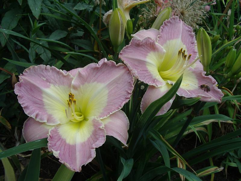 Erstaunlich, wie wenig Footprints in the Sand zur Augenfarbe beigetragen hat! Und Dragonfly Dawn ist ja nun auch nicht gerade rosa, von seinen anderen Nachkommen hat keine ein rosa Band...gefallen 'tut' er mir !Letzte Blüte eines zwar nicht blauen, aber wunderschönen zartrotäugigen Sämlings aus der Kreuzung Footprints in the Sand x Dragonfly Dawn.