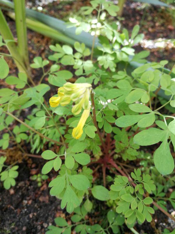 Die erste Blüte an meinem ganz gewöhnlichen, aber von mir heiß geliebten, Corydalis (Pseudofumaria) lutea. :-*