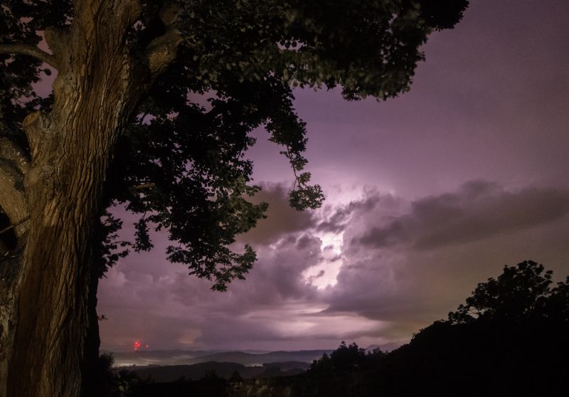 Gegen 3°° lief der verclusterte Zellenkomplex auf. Extrem helle Wolkenblitze, wenig Erdblitze.