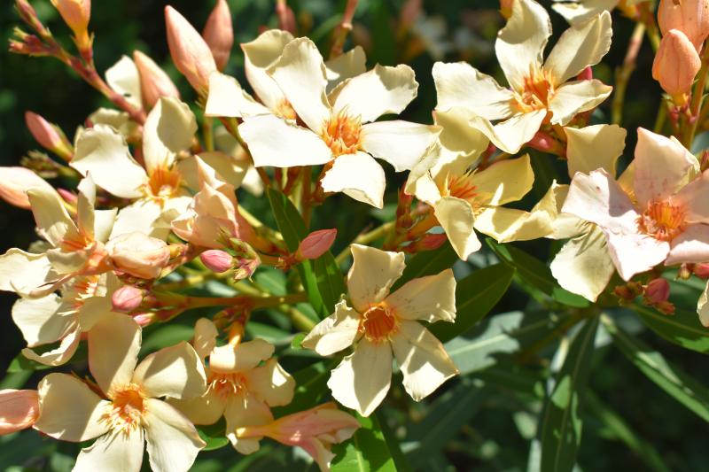 Ein pfirsichfarbener Oleander, blüht seit vielen Wochen.