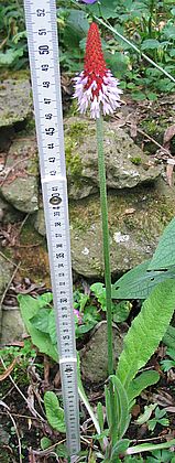 Ha! Bei mir ist Primula vialii auch 50 cm hoch geworden.Sie benötigen, was kultivierten Menschen verhasst ist: feuchte Füße!