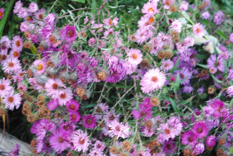 Lagernde 'Rosa Sieger',weil sehr hoch und unten nackig.Eigentlich verzichtbar,aber ich mag die zartrosa Blüten mit dem dunkleren Hauch um die Staubgefäße herum.