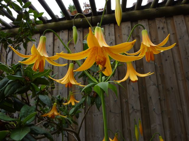 ich habe heuer eine taliense von hans bekommen. der blütenstand ist eine rispe + damit scheidet duchartrei aus lt. der beschreibung auf lily-dudes website. leider hat mir die lilienfliege die meisten blüten zerstört. nur diese hier macht noch einen guten eindruck:Bernie,bin nicht so der Spezialist, aber die Pflanze treibt "Ausläufer", ist ein Zeichen für duchartrei. Und schau mal hier....aber... ?@Ulrich:bist Du sicher daß es durchartrei ist? Die hat normalerweise die Blüten in einer Dolde, bei Deinem Bild seh ich daß der Blütenstiel aus einem dicken Stiel kommt und der weiter oben weiter Blüten hat, also eine Rispe und damit eher Lilium taliense