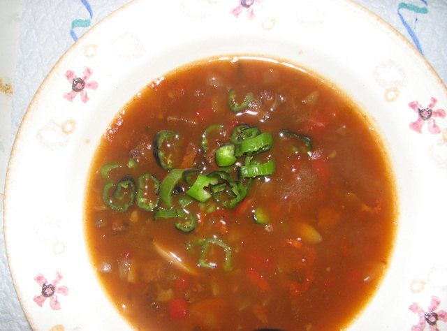 heute gab es gulaschsuppe. bei meiner portion optional mit etwas scharfem paprika.