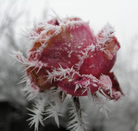 Heute gab´s bei uns auch Raureif, leider ohne Sonne. Da werden bei mir die Fotos leicht unscharf. Weinrebe