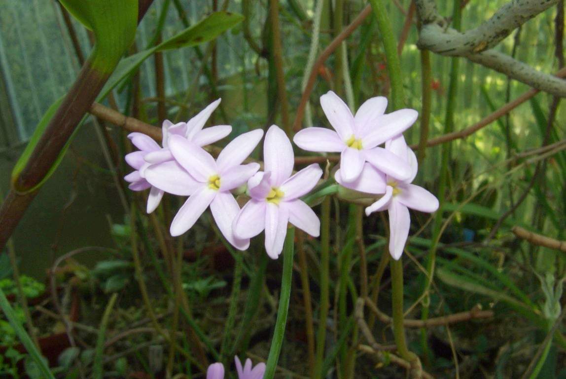 Irgendeine meiner Tulbaghien steht eigentlich immer in Blüte. Jetzt blüht zum Beispiel inmitten eines obskuren Gebüschs aus Orchideen und Askleps die Tulbaghia maritima, die aber von einigen Experten ob ihrer Ähnlichkeit nur als Varietät der T. violacea angesehen wird. Wie auch immer, ein hübscher und problemloser Blüher mit recht angenehmen Blütenduft - trotz Zugehörigkeit zu den Alliaceae.;)Ph.