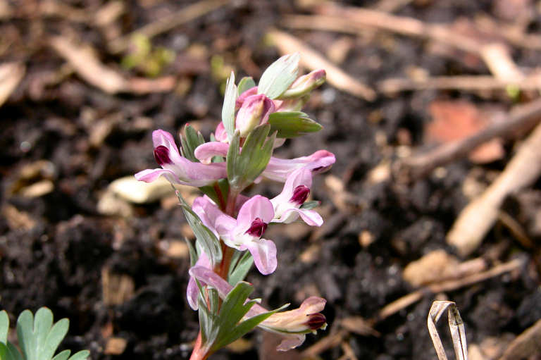 Einer meiner besonderen Favoriten ist Corydalis solida ssp. incisa. In rot und weiss ist dieser Lerchensporn eine wunderbare Ergänzung zur himmelblau blühenden Chionoscilla allenii.