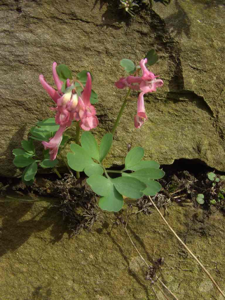 Ein äußerst untypischer Standort für Corydalis solida, aber er fühlt sich dort wohl und hat in der Nachbarfuge schon zwei Sämlinge gesetzt.