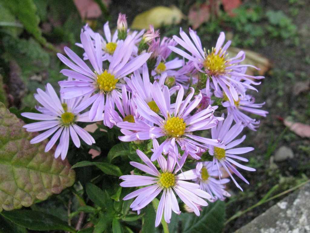 Ich staune jedenfalls wie gesund die beiden trotz des recht trockenen Standorts sind. Beide haben sogar schon gut entwickelte Grundknospen entwickelt. Das schaffen getopfte Stecklinge oft nicht einmal im zweiten Winter.Wenn das Blattwerk links unten dazugehört, hat die eher was von der Novi-Belgii/Dumosus-Gruppe, finde ich. Passt so gar nicht zu den vermeintlichen Elternastern. Aber authentisch verhalten sich die Sämlinge ja sowieso erst im zweiten Jahr - vor allem in puncto Blütezeit und Ausbreitungsdrang.Nr. 1 ist im ersten Jahr ungefähr 50 cm hoch geworden und blüht mit ca. 2,5 cm großen Blüten in einem recht großen lockeren Blütenstand und einer Blütenfarbe, die einen Tick dunkler ist als 'Pink Star' die in diesem Beet zusammen mit 'Coombe Fishacre' und 'Lady in Black' steht.![]()