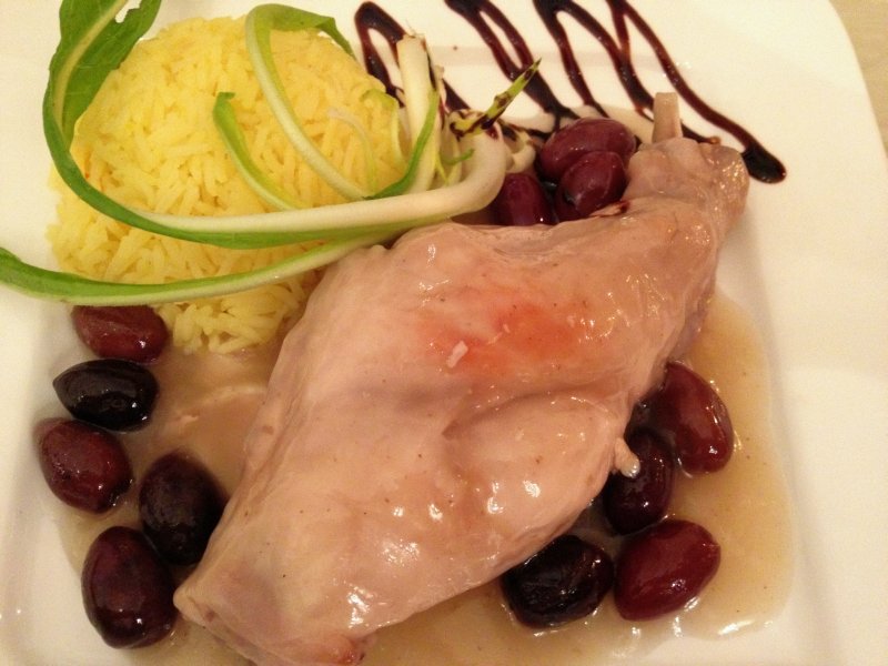 alameng: kaninchenkeule mit knoblauch, schwarzen oliven und safranreis. ich war mit der zubereitung noch nicht wirklich zufrieden, das wird nochmal anders probiert.