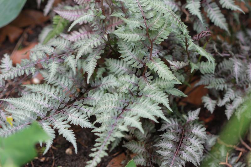 Danke, ist ein Brokatfarn... Athyrium nipponicum 'Silver Falls'... aber eigentlich passt jeder Brokatfarn zu Opiophogon. ;)