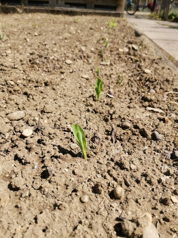 Die Aussaat ist gut verlaufen. Am 22.4. auf festen und feuchten Bodenhorizont gesät, am 1.5. aufgelaufen.
