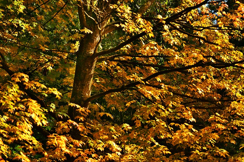 Der Zimtahorn hier ist auch noch grün und ist immer der letzte Ahorn in Herbstfärbung.