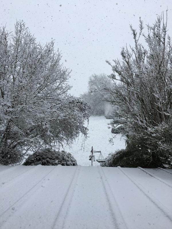 um dann noch schnell vorm Mittagessen raus zu stürmen und Mittelmeerzypressen, Bambus und noch ein paar Immergrüne von Nass-Schnee zu befreien :-X