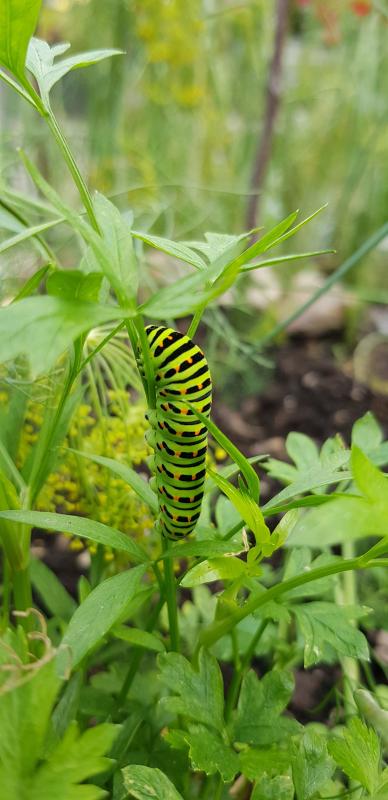 Einen Schwalbenschwanz sehe ich leider sehr selten. Diesmal hat der Anbau von Dill geklappt. Ich habe ein kleines Kräuterhochbeet angelegt. Im Freiland klappte der Anbau von Dill so gut wie nie...