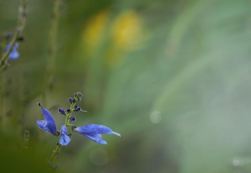 Salvia cacaliifolia hat ein tolles blau. Der Wuchs ist aber sehr ausladend, fast kriechend, deshalb die Blütenstände erscheinen immer etwas entfernt von einander. So ist der Fernwirkung nicht ausgeprägt.