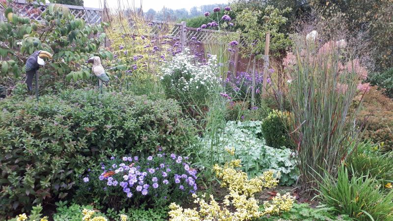 Oder meinst Du unten den kleinen Bodendecker ? Das ist Gold- Oregano... soll extrem wüchsig sein. Hoffentlich bereue ich den winzigen Ableger nicht, den ich im Frühjahr gepflanzt habe. :o