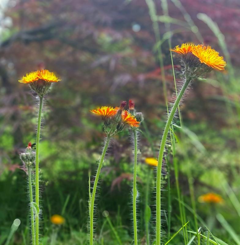 Hier macht der Rasenmäher ( bei uns noch von Menschenhand geführt .....) immer einen großen Bogen ´rum : Oranges Habichtskraut.