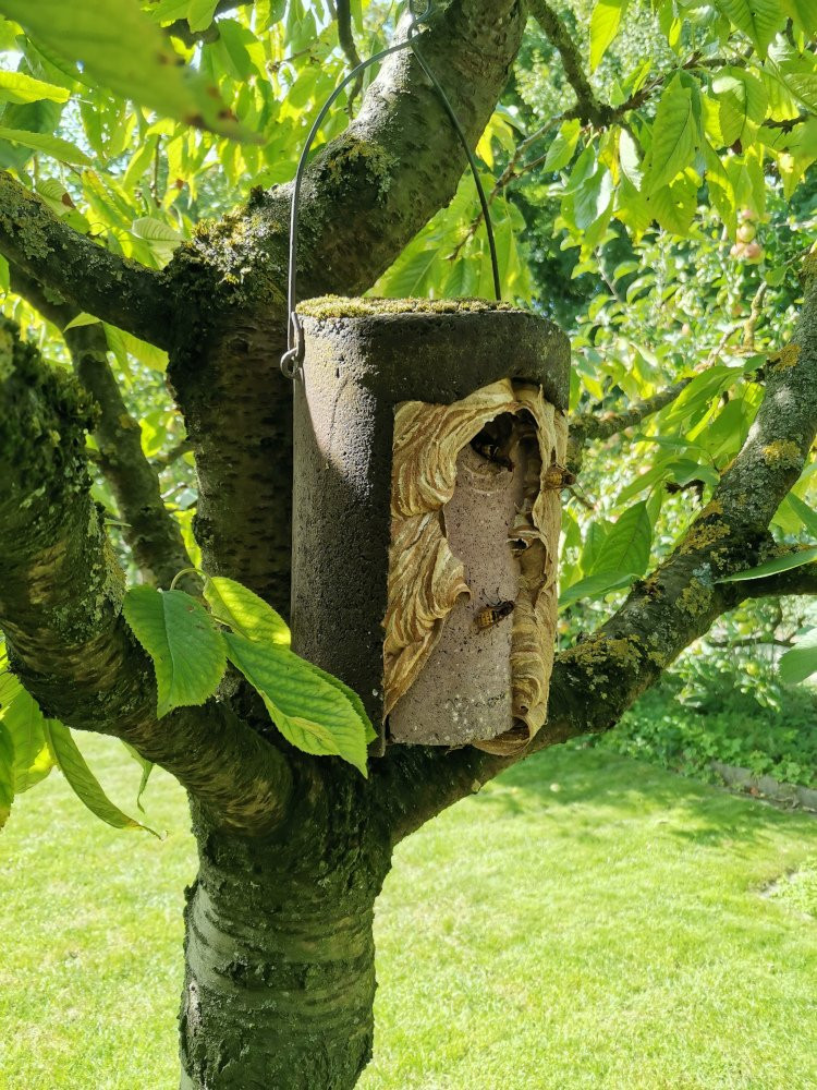 Hornissen sind hier auch die einzigen, die die asiatischen Hornissen `knacken´. Das Nest neben der Terrasse im Kirschbaum durfte deshalb bleiben.