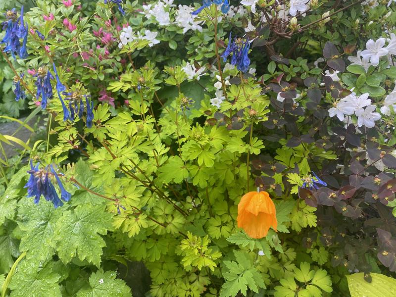 Corydalis "Golden Spinners" macht sich gut im bunten Umfeld: