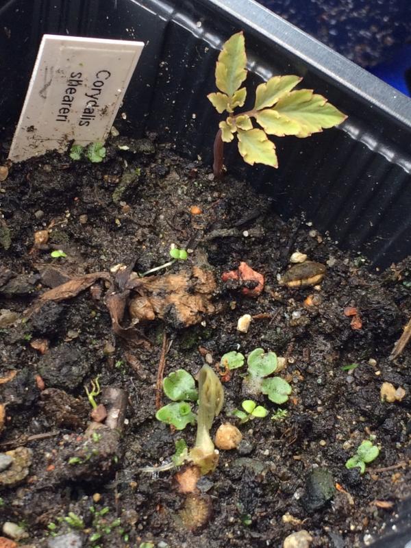 Dank lerchenzorns Brutknollenspende zeigt Corydalis sheareri hier nun erste Lebenszeichen.