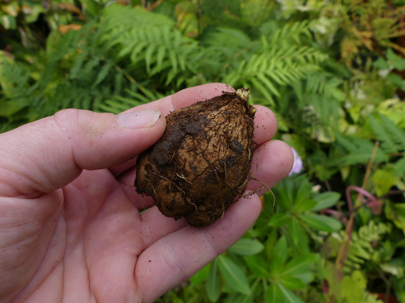Bei Verberghe gab es Corydalis marschalliana (richtig wohl Corydalis cava subsp. marschalliana). Ich habe die heute noch schnell vergraben wollen. Die eine Knolle ließ mich dann doch staunen!