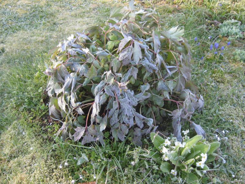 Ich hatte mich so gefreut darauf, dass nach vielen Jahren. eine aus Samen gezogene Strsuchpäonie endlich blühen würde (und die aufbrechende Knospe auch nicht durch Maifröste Schaden nehmen würde). Heute aber bot sich mir dieses Bild. :'(