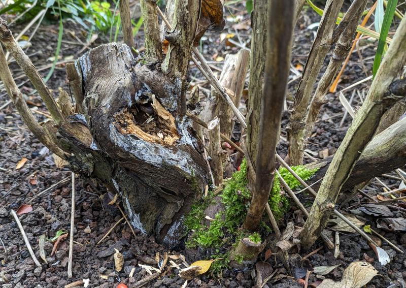 Meine vor 17 Jahren aus dem Garten meiner Eltern ausgegrabene Paeonie macht mir große Sorgen. Pilzbefall gibt es schon länger, aber jetzt habe ich gesehen, dass meine Abwesenheit im letzten Herbst/Winter/Frühjahr ihr gar nicht gut bekommen ist. Ein Teil der Basis löst sich auf!