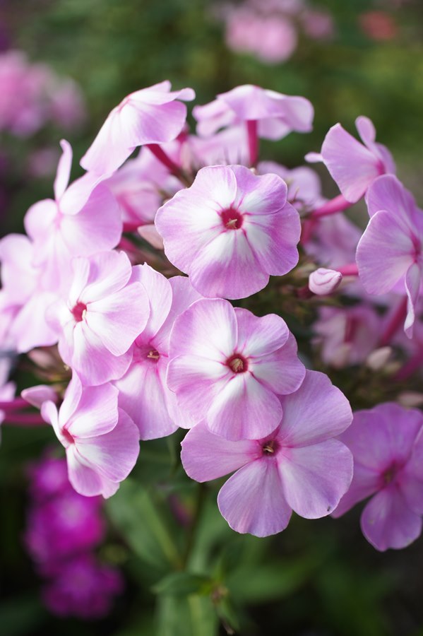 Nun gut, dann nehmen wir Pfirsichpyramide in die engere Wahl, ebenso Rosenhauch und Rosenquarz. Es müßte eine Sorte sein, deren Auge nicht einheitlich auf jeder Blüte ausgebildet ist. Deswegen schließe ich Rosabella - anhand der Fotos von Herrn Rieger - eher aus. Dort hat praktisch jede Blüte ein Auge. Dass es ein Foerster-Phlox sein müßte, mache ich an der Giesskanne fest.![]()