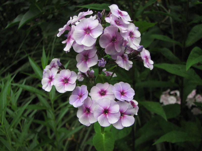 also nass von oben gabs bis ende juli reichlich, sodass alles, was winterfest ist, in die höhe schoss und üppig da stand, auch phlox. der blinzelt mich auf augehöhe an. da machte es augenscheinlich auch nichts, dass die temperaturen eher niedrig waren, hier ziemlich durchgehend. die blüte kam dann dementsprechend später. inken hatte schon einen blühenden garten, da gabs hier nicht mal ansatzweise eine dolde zu vermuten.