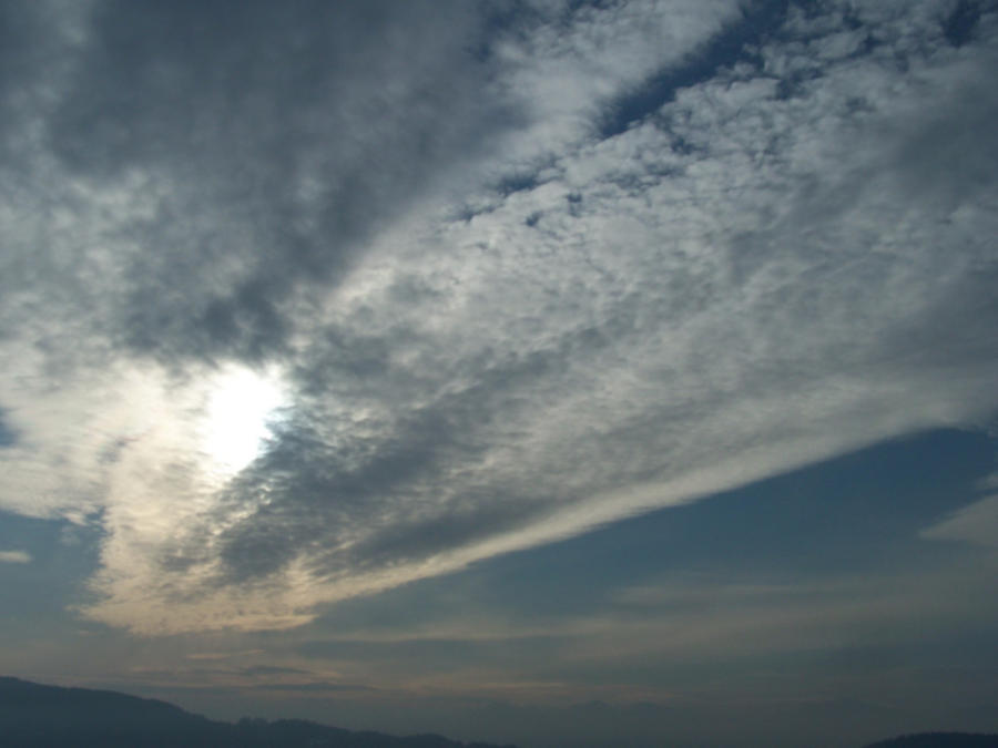Erinnert ein wenig an die sanften Hügelkuppen im Schwarzwald. Neulich schien die Sonne die Wolken an. Hab es mit meiner einfachen Kamera probiert. Das sind die Ergebnisse.