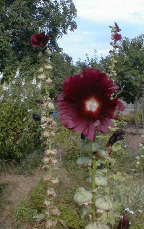 nochmal Stockrosen, sich in den Vordergrund drängelnd