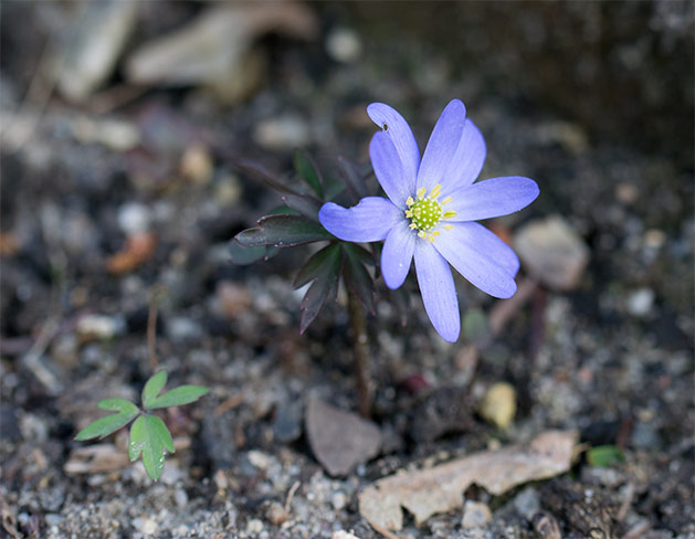 Anemone caucasica, ein schöner Winzling im kleinen Steingarten.