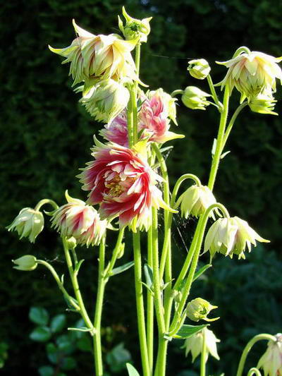 Rosenbegleiter im Mai.... bei mir blühen zur Zeit viele Akeleien, die sich munter überall aussäen. Also sind auch die gekauften Sorten nicht mehr echt. Die Sämlinge schauen aber auch ganz nett aus. Diese ist sicher ein Sämling von einer der Barlow Hybriden, aber ob von Nora Barlow oder Christa Barlow ist nicht klar.