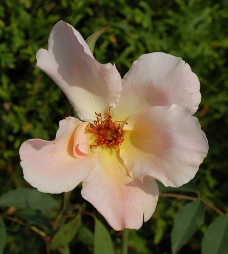 Dieso wohl auch undgefähr, allerdings ist das hier eine Notblüte in der Dürre, aber immerhinhm. unsere Heritage ist aber irgendwie kompakter. Wie gross ist denn die Blüte? Unsere ist ca. 6-8cm...Bei der Blüte denke ich noch mehr an Heritage, vieleicht bilde ich mir das auch wieder ein