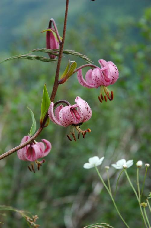ich habe heute "meinen" martagon-hang besucht, sie sind noch in vollblüte, in gesellschaft von thalictrum, aconitum, r. pendulina, heidelbeersträuchern, kriechwacholder + hahnenfuss: