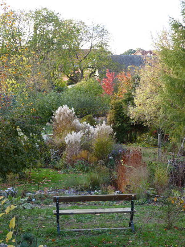 Die Herbstfärbung ist wirklich wunderbar, gerade vor einer so grünen Kulisse - da merkt man dann doch die vielen Kubikmeter Wasser, die geflossen sind. Die zahlreichen Gräserhorste leuchten hingegen fast unwirklich, das geht echt nur in einem Garten dieser Größe. :D