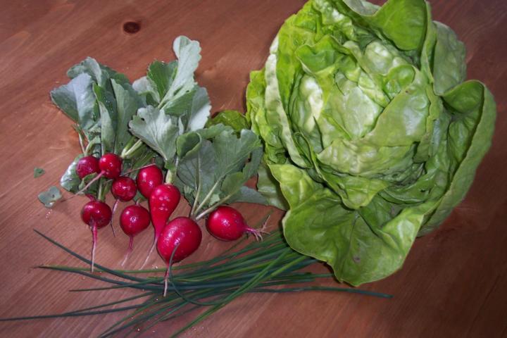 Gestern Asia Pflücksalate 4 verschiedene Sorten und heute einen Kopf "Frisby" Salat. Meine weissen Kopfkohlräbchen sehen auch schon gut aus. Mangold und Spinat muss ich nachsäen, war wohl das Saatgut zu alt