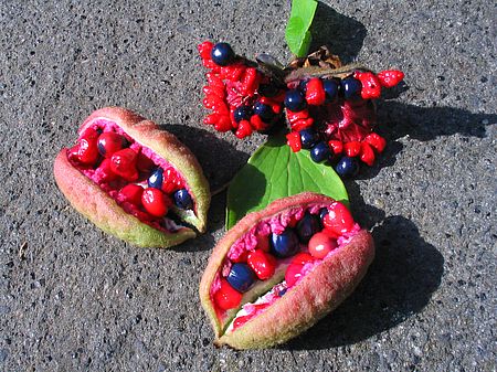 Hallo, nur anhand der Frucht kann ich nichts sagen, das Laub und die Blüte sind da mehrsagender. Ich ernte immer die blauschwarzen Samen raus und lasse die knallroten Scheinsamen an der Staude dran. Zumindest für ein paar Wochen hat man dann im Spätsommer etwas unerwartet Farbiges im Garten, bis die roten Dinger runterfallen oder von neugierigen Vögeln rausgepickt werden.CarstenReiche Ernte einer Art (welche, weiß ich bis heute nicht), die sich leicht durch Aussaat vermehren lässt.Kaum eine andere Pflanze hat so wunderschöne Fruchtstände.