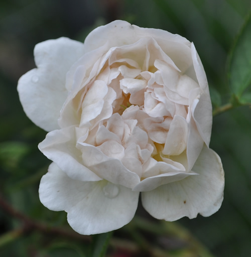 Eine einzige, sehr kurrlige Blüte von Fräulein Octavia Hesse. Die Grösse der Laus zur Blüte