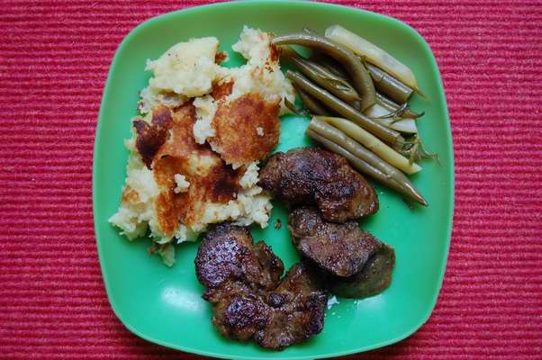 Aella, wie machst Du die Mangosoße?Lieschen, kamen Tomaten, Käse, Olive etc. kalt und pur auf die Bavette? Oder hast Du die noch zubereitet?Heute gab es Reste vom gestrigen Sonntagsessen: Hähnchenleber mit dreierlei Bohnen (grün, gelb und violett) und aufgebratenem Kartoffelbrei