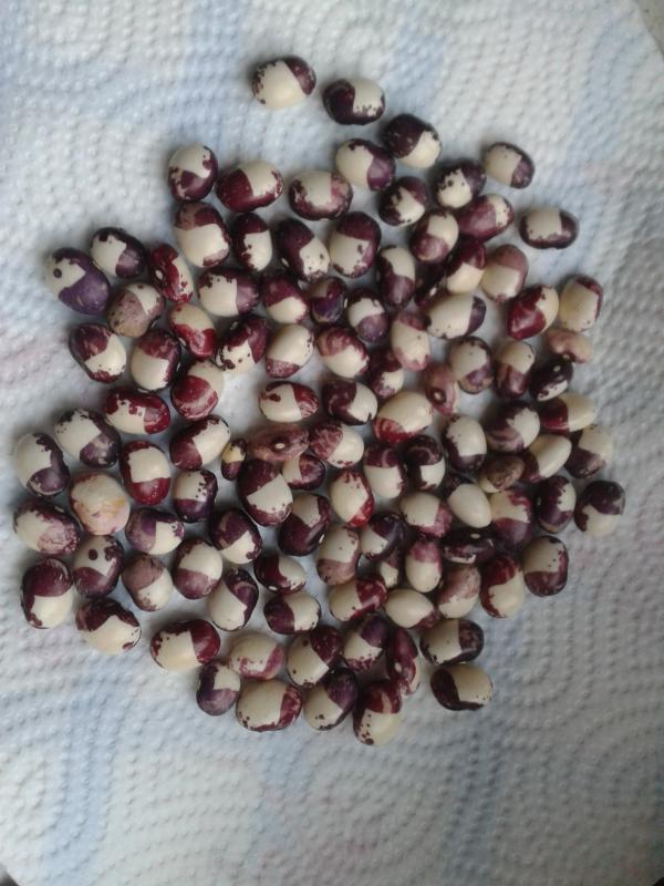 grad die ersten Inka Pea Bean ausgepuhlt. Man, die sind ja so hübsch :D. Da kommen auch noch mehr. Sitzt noch allerhand dran. Pro Bohne sind durchschnittlich 4 Kerne drin