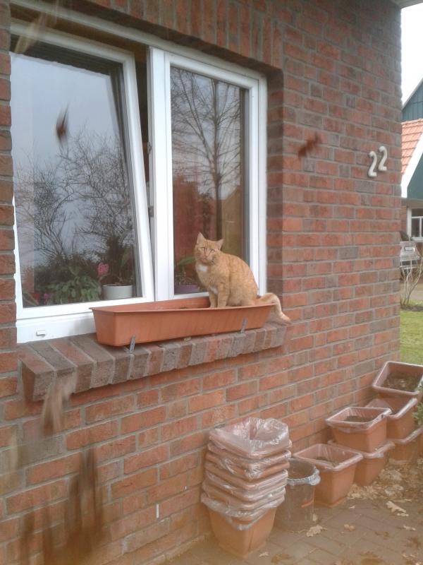 Eben war Jimmy wieder da...guckte mich glücklich an, raste in den Flur, krabbelte auf den Schuhschrank und guckte in den Spiegel. Sehr interessant waren meine Jacken, dann ruhte er sich aus und ging wieder, ab übe die Straße und rüber in Nachbars Wiese.