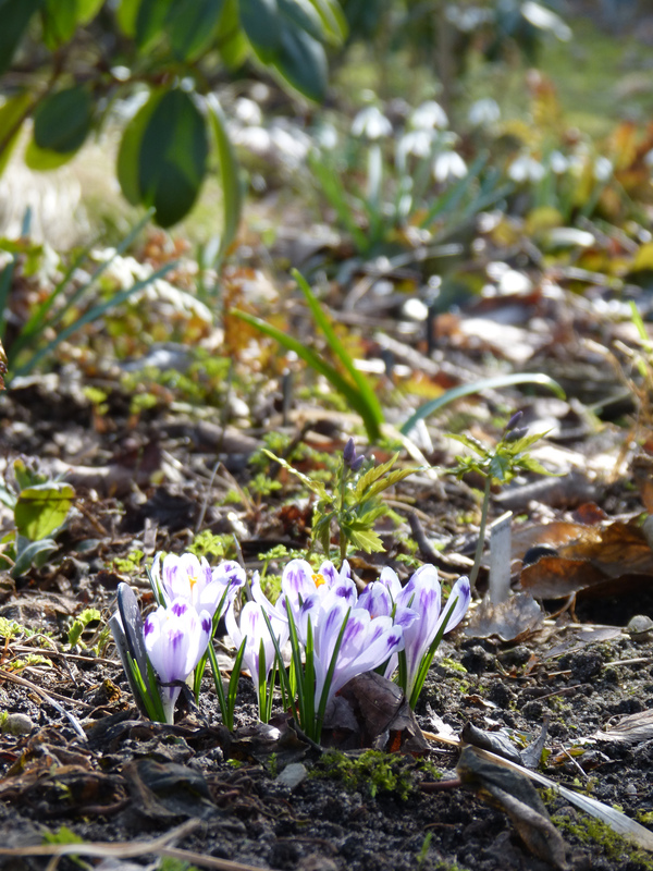 Das wird nächstes Jahr zeitlich wohl nicht mehr klappen, weil die Krokusse früher austreiben werden, aber es war einen Versuch wert: 1-Euro-Forsythie trifft 1-Euro-Krokusse aus dem Baumarkt-Abverkauf.