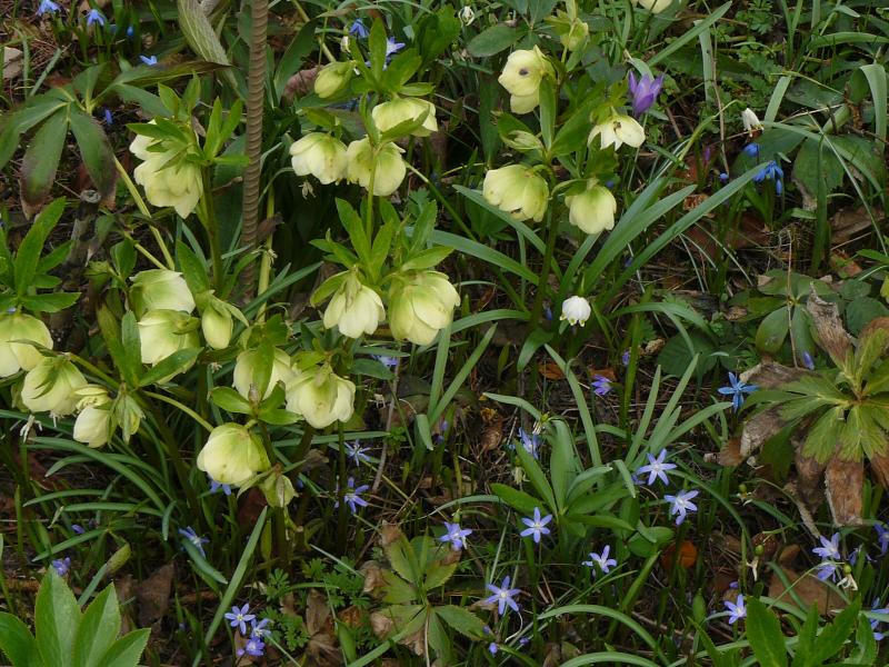 Ein Schneeglöckchenbaum würde natürlich perfekt zu den Schneeglöckchen passen, aber blüht der nicht erst im April/Mai? Leider kann man auf dem Foto keine Details erkennen.