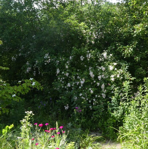 oile hat geschrieben: ↑29. Jun 2020, 23:07 'Immensee', die gesündeste und robusteste Rose, die ich kenne, gilt als Bodendeckerrose. Nun ja - man gebe ich Gelegenheit zu klettern und sie zeigt, dass sie auch rambeln kann. Hier schaut sie hoch über mir aus der Felsenbirne. ;D