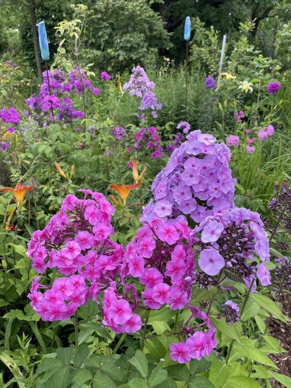 Bin immer wieder begeistert, dass doch noch so üppige und zahlreiche Phloxsorten existieren! Bei mir sind in diesen trockenen Sommer 20/21/22 alle vertrocknet, bis auf einen, den ich beii Horstmann als „P. amplifolia Minnehaha“ kaufte. Blüht monatelang, wuchert und duftet hier im trockenen RheinMainGebiet. Da bei mir natürlich auch keine Hortensien funktionieren, ist das eine sehr schöne Hochsommerblüte im Garten (ich schreibe das glaub ich jedes Jahr für den Fall, dass hier Teilnehmer traurig sind, dass bei ihnen Phlox nicht funktioniert)