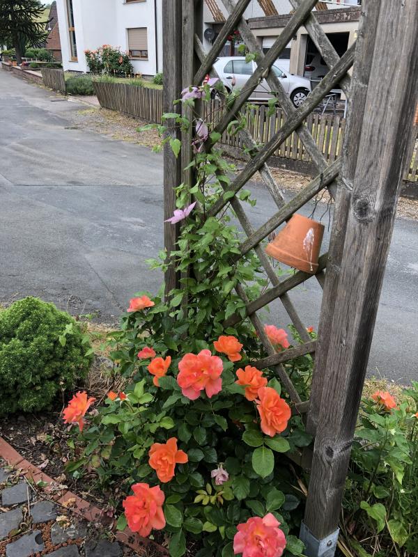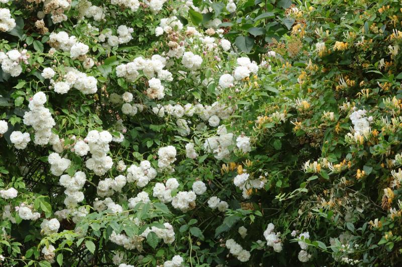 In meinem Garten blühen dieses Jahr die Kletterrosen überschwänglich, wahrscheinlich dank des vielen Maienregens.