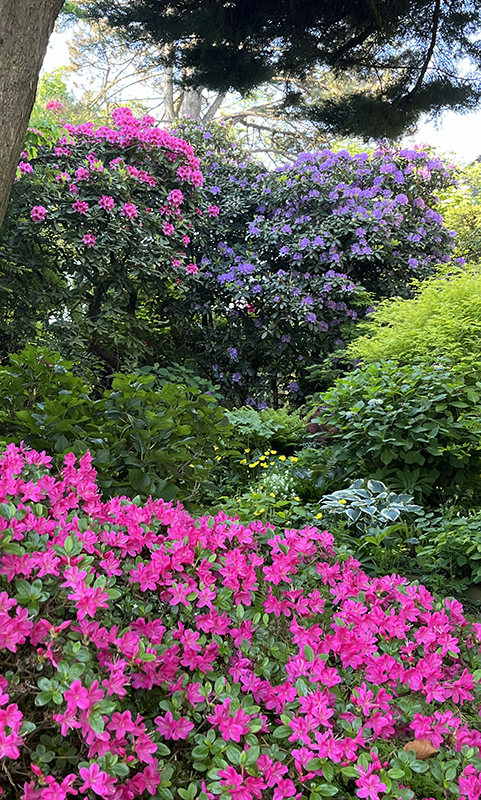 Das hier ist z.B. der aktuelle Zustand von Magnolia 'Genie' (in dem anderen Bild vor dem roten Ahorn nur zu erahnen), daneben einige Hydrangea aspera 'Macrophylla'. :-X